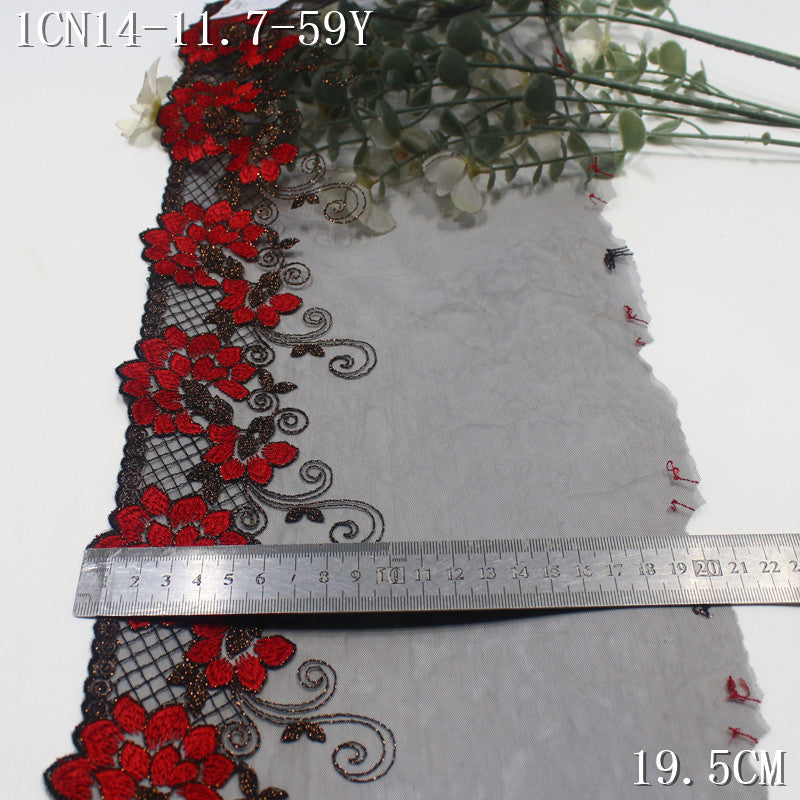 【1Pack】-Freedombeauty | Classic Black Mesh Unilateral Gold Thread Safflower Embroidery Lace 19.5cm Clothing Accessories Home Textile Accessories