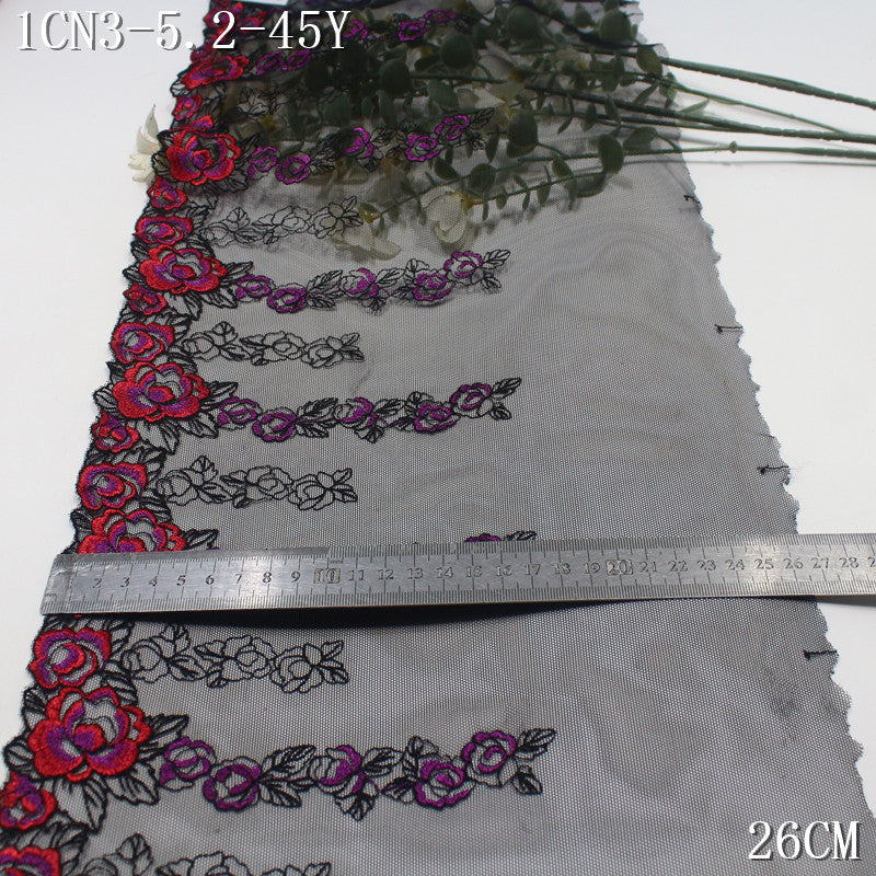 【1Pack】-Freedombeauty | European and American retro black mesh sexy gradual change flower embroidery lace 22cm clothing underwear DIY accessories