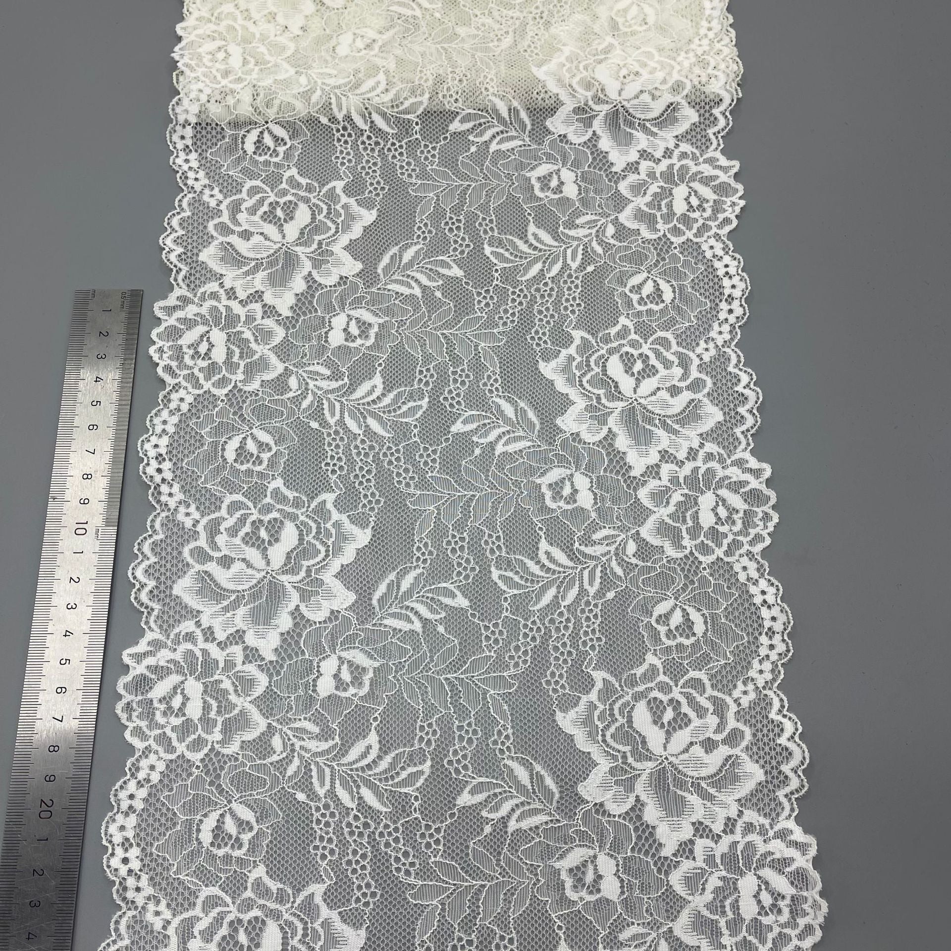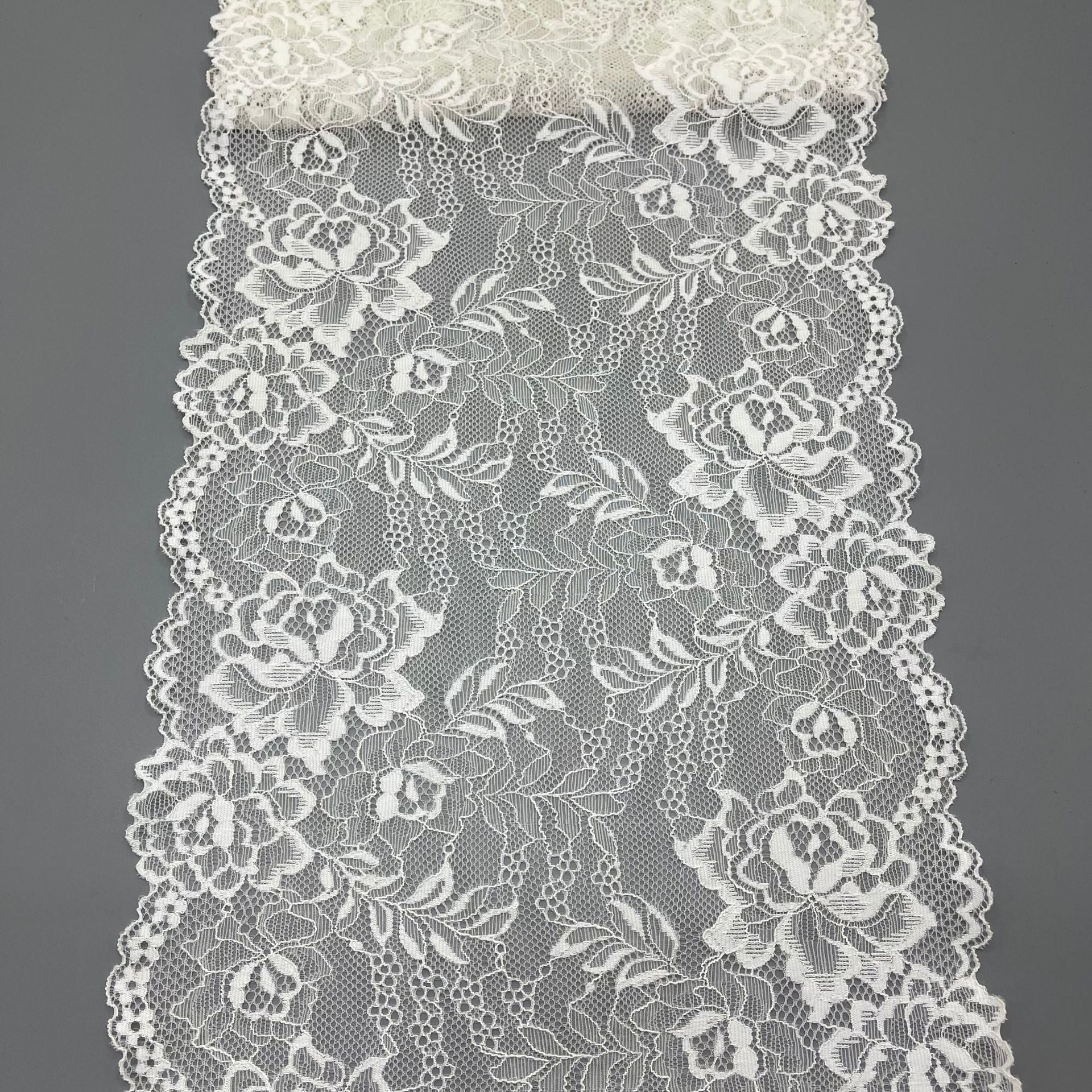 freedombeauty|24cm Elastic White Hollow Lace Trim Nylon Wedding Dress Accessories Decorative Lace Custom Design