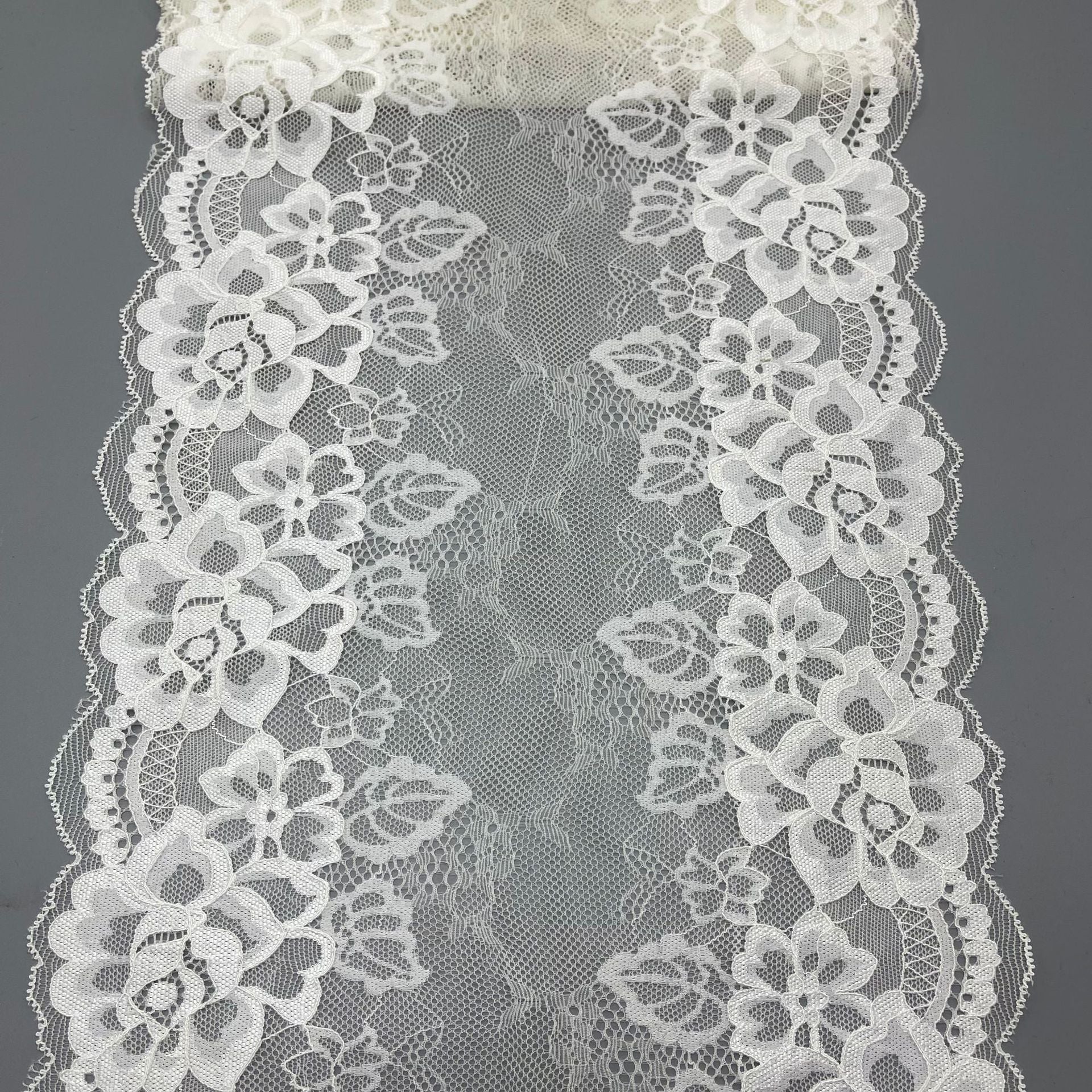 freedombeauty|24CM Wedding Dress Lace Trim White Elastic Nylon Lace DIY Handmade Decoration E-commerce Supply