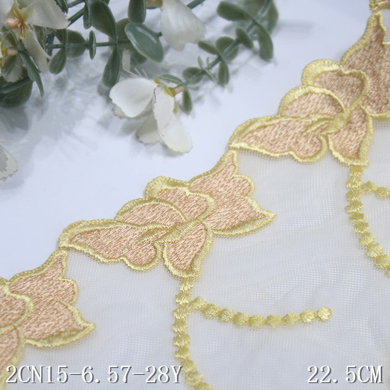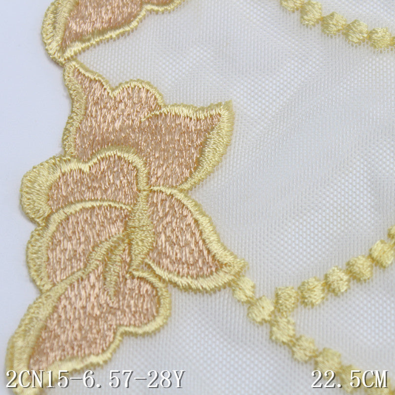 【1pack】-freedombeauty|Double-Sided Vintage Texture Yellow Flower Mesh Embroidery Trim Clothing Home Textile Lace Trim DIY Accessories