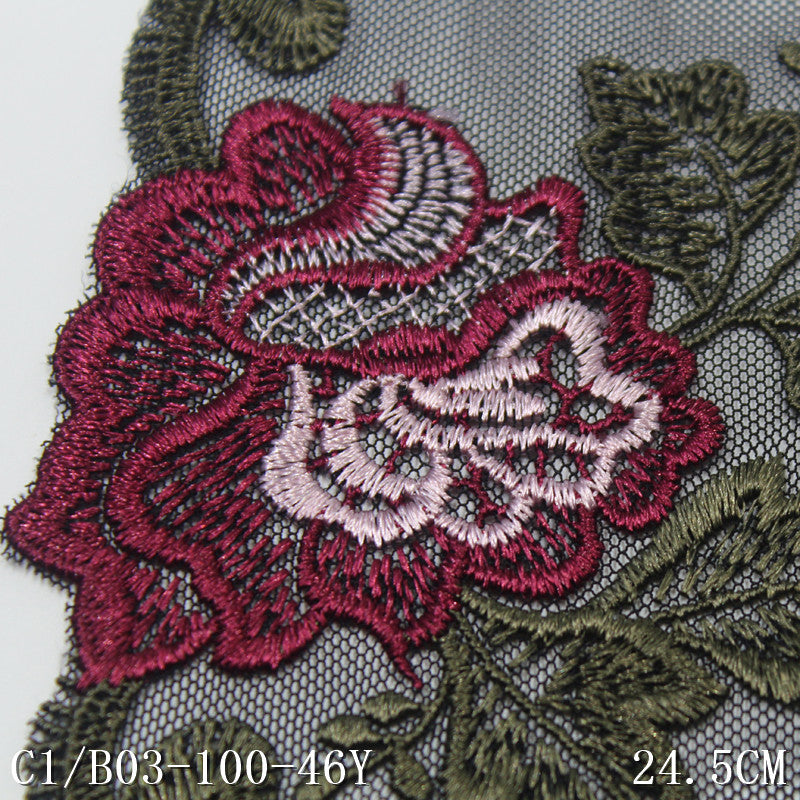 【1pack】-freedombeauty|Black Soft Mesh Single Edge Ancient Style Flower Embroidery Lace Trim Clothing Home Textile Lace Trim DIY