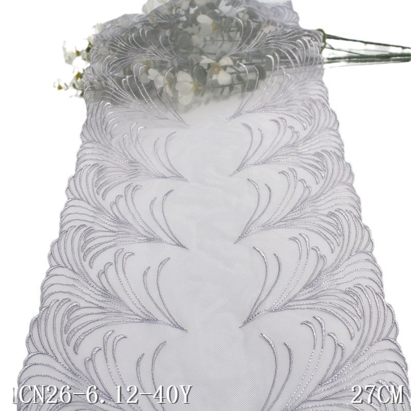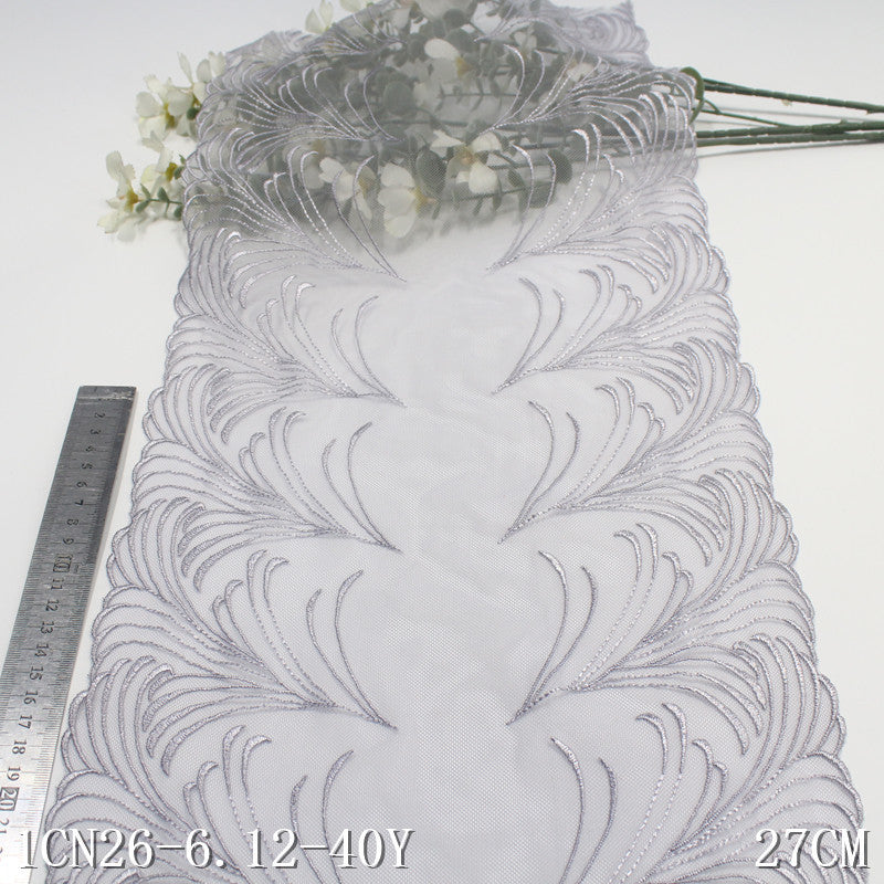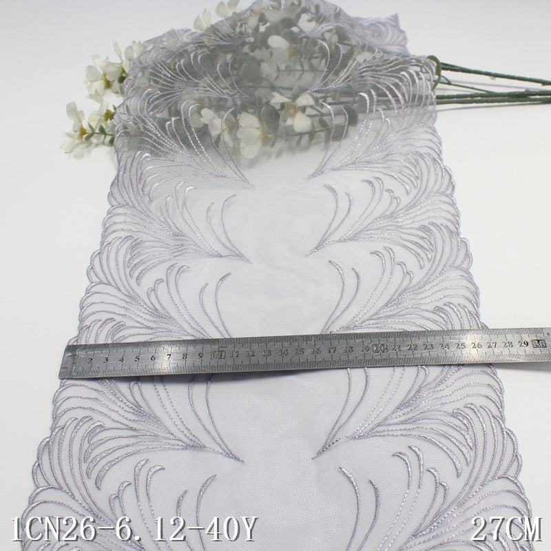 【1pack】-freedombeauty|Blue Double-Sided Pastoral Style Rice Spike Mesh Embroidery Trim Clothing Home Textile 27cm Lace Trim Accessories