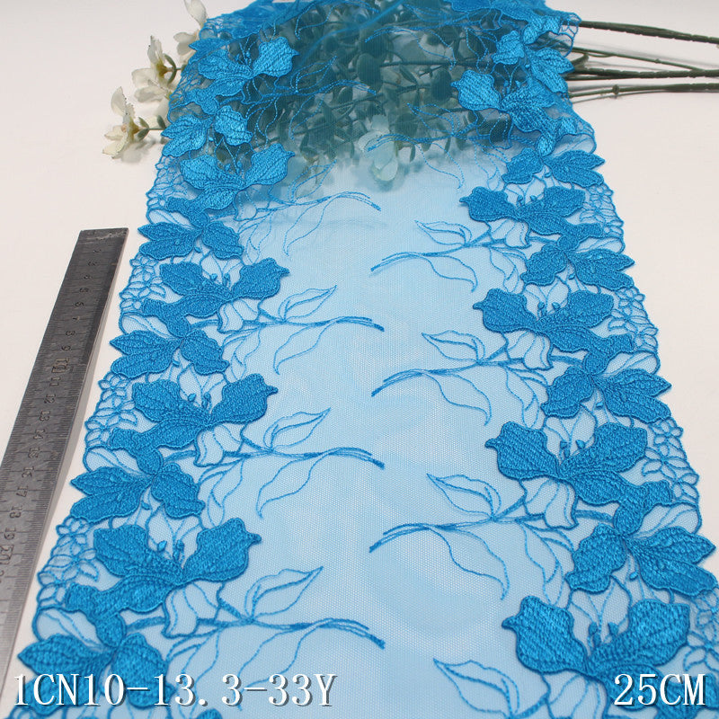 【1pack】-freedombeauty|Coast Blue Double-Sided Vintage Flower Embroidery Lace 25cm Curtain Sofa Cushion Lace Trim DIY