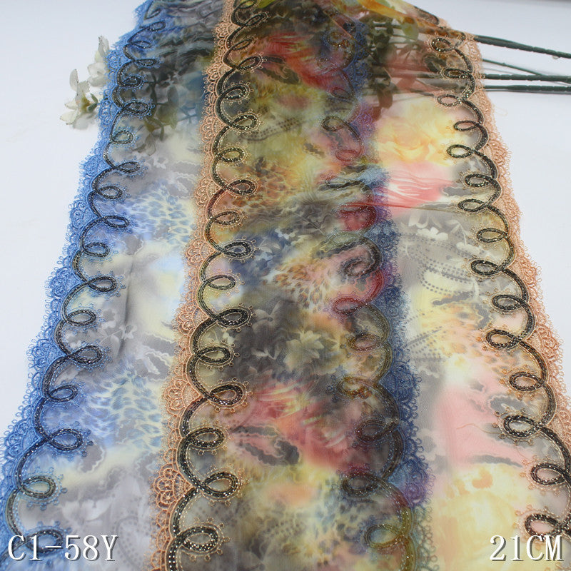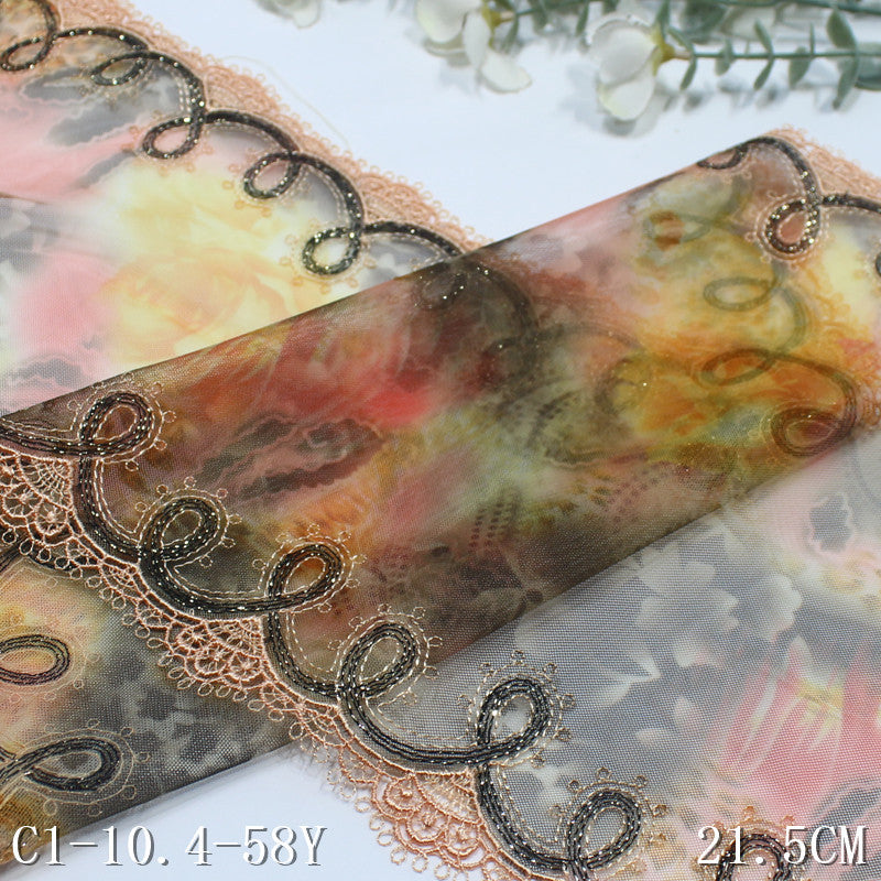 【1pack】-Freedombeauty | Bilateral Gold Thread Water Soluble Classical Printed Mesh Embroidery 21cm Curtain Sofa Cushion Lace Accessories