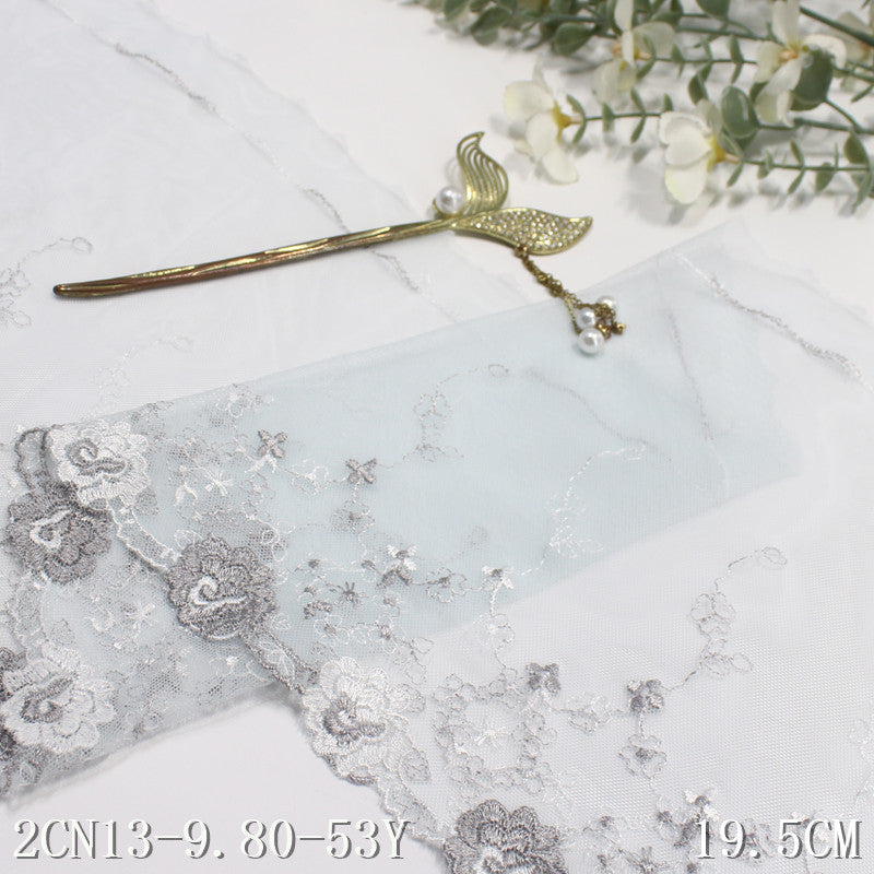 【1pack】-freedombeauty|Gray Mesh Single-Sided Two-Tone French Flower Embroidery Lace Trim Clothing Home Textile Lace Trim DIY Accessories