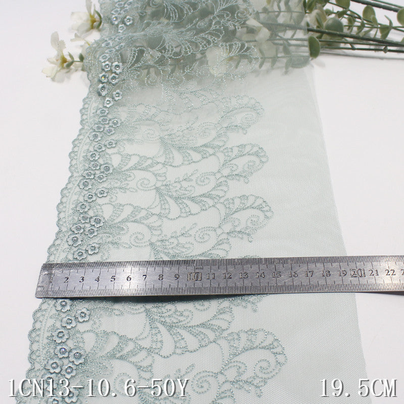 【1pack】-freedombeauty|Green French Style Single-Sided Silver Thread Small Flower Mesh Embroidery 19cm Curtain Sofa Cushion Lace Trim Accessories