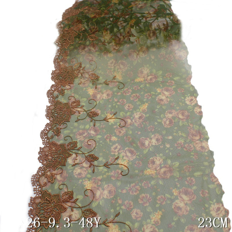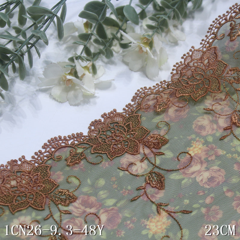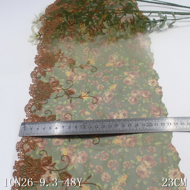 【1pack】-freedombeauty|Green Printed Mesh Single-Sided Water-Soluble Flower Embroidery Trim Curtain Sofa Cushion Lace Trim Accessories