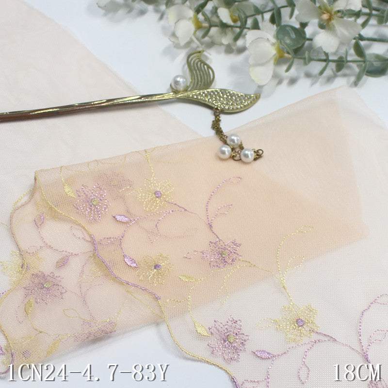 【1pack】-freedombeauty|Light Orange Mesh Single Edge Vintage Small Flower Embroidery Lace 18cm Ancient Costume Hanfu Lace Trim Accessories