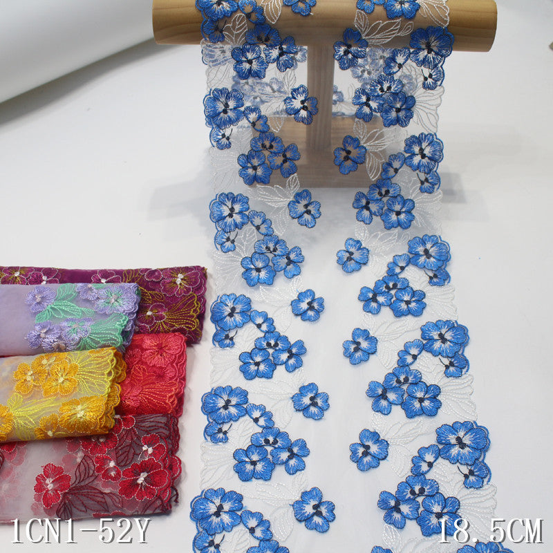 【1pack】-Freedombeauty | Multicolor Mesh Bilateral Vintage Flower Embroidery Lace 18cm Curtain Sofa Cushion Lace Accessories