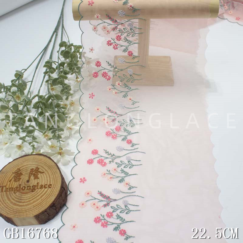 【1pack】-Freedombeauty | Boutique Light Pink Unilateral Fresh Floral Embroidery Lace Clothing Curtains Lace Accessories