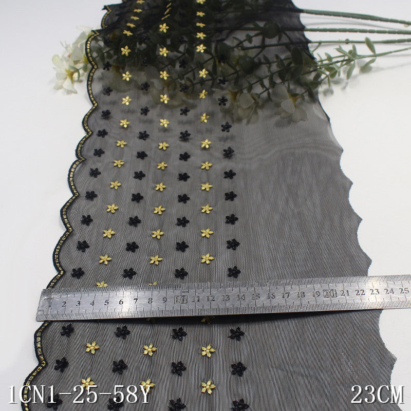 【1pack】-Freedombeauty | Single Side Half Two-Color Small Floral Stretch Embroidery Lace Curtain Sofa Cushion Lace Accessories DIY