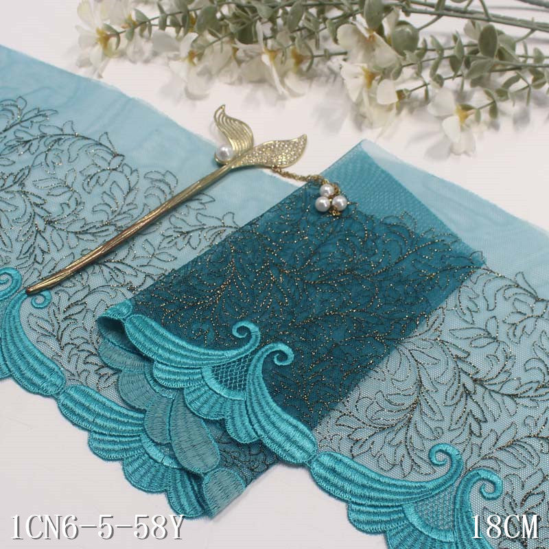 【1pack】-freedombeauty|Two-tone Mesh Ancient Style Single-sided Gold and Silver Thread Leaf Embroidery Lace Trim for Clothing and Curtain Accessories